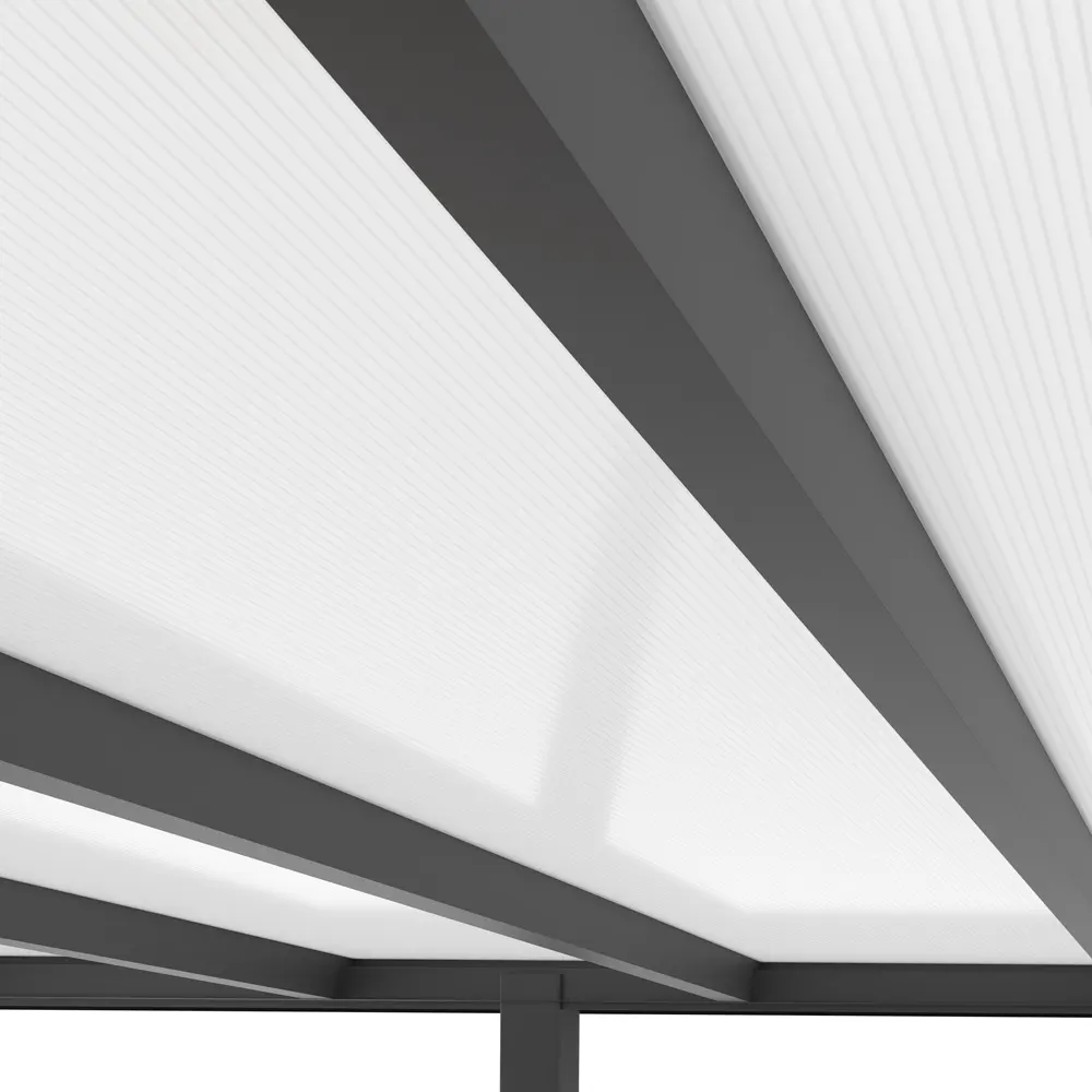 - ✔️ 16mm starke Stegplatten in opal/weiß – optimaler Lichtdurchlass mit Sichtschutz