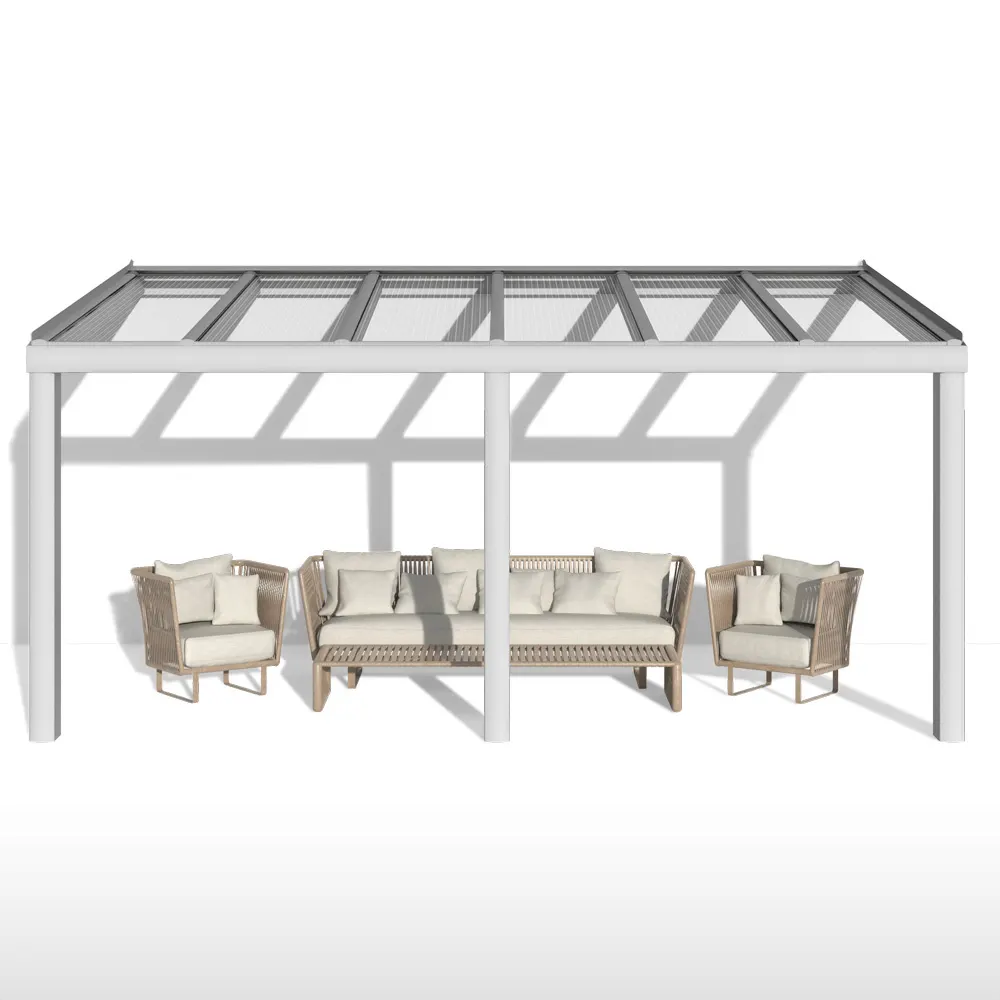 Dank der hochwertigen Materialien überzeugt dieses Dach durch Langlebigkeit, Stabilität und ein elegantes Erscheinungsbild.